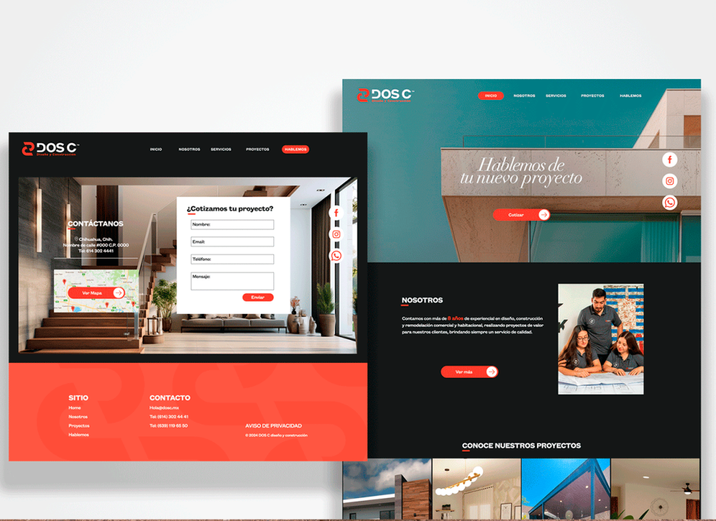 DOS C es una empresa especializada en diseño y construcción. Se distingue por su enfoque responsable, su compromiso con la calidad y su capacidad para liderar proyectos con visión estratégica. Buscaban una presencia digital que reflejara su profesionalismo y que les ayudara a atraer más clientes potenciales.