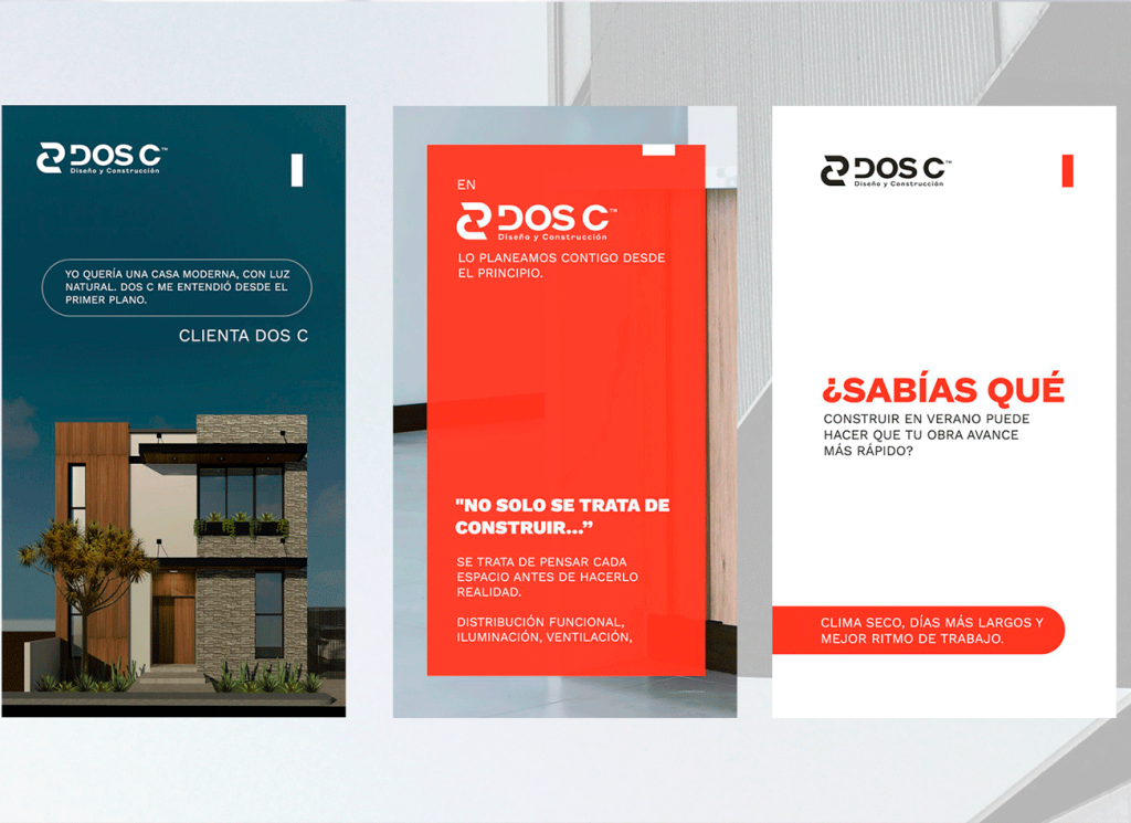 DOS C contaba con redes sociales poco activas y sin una línea de comunicación definida. Aunque su trabajo era sólido, su imagen digital no proyectaba su nivel de experiencia ni conectaba con su público objetivo. El principal reto era posicionar la marca como un referente local, generar confianza y aumentar las oportunidades de negocio a través de una estrategia digital integral.
